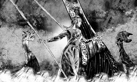 Cette fois-ci, je vais vous faire découvrir une nouvelle bande dessinée de qualité. Les premières images m’ont tout de suite fait penser à « Niourk » de stefan Wul, quand l’enfant noir arrive dans un New-York post apocalyptique. Elles m’ont également fait penser à certains « Thorgal », avec ces grands drakkars. De belles références pour cette BD en cours de réalisation.